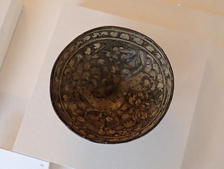 チーターでしょうか。斑点模様の動物が、鉢の内側に描かれています。