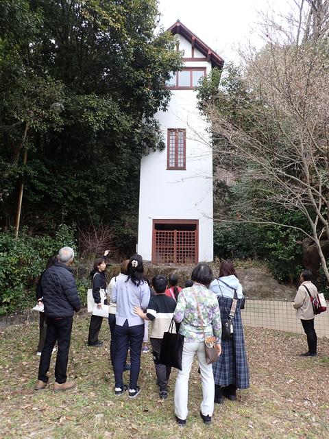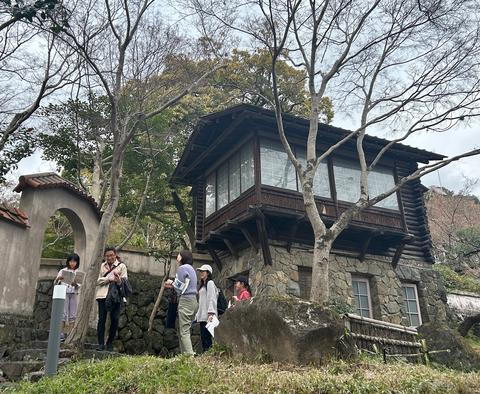 さらに、通常は非公開の茶室や、栖霞楼前にかつて温室が建っていたエリアも見学しました。100年前の大山崎山荘の姿を実際に体感し、思い描くことができる貴重な機会となりました。